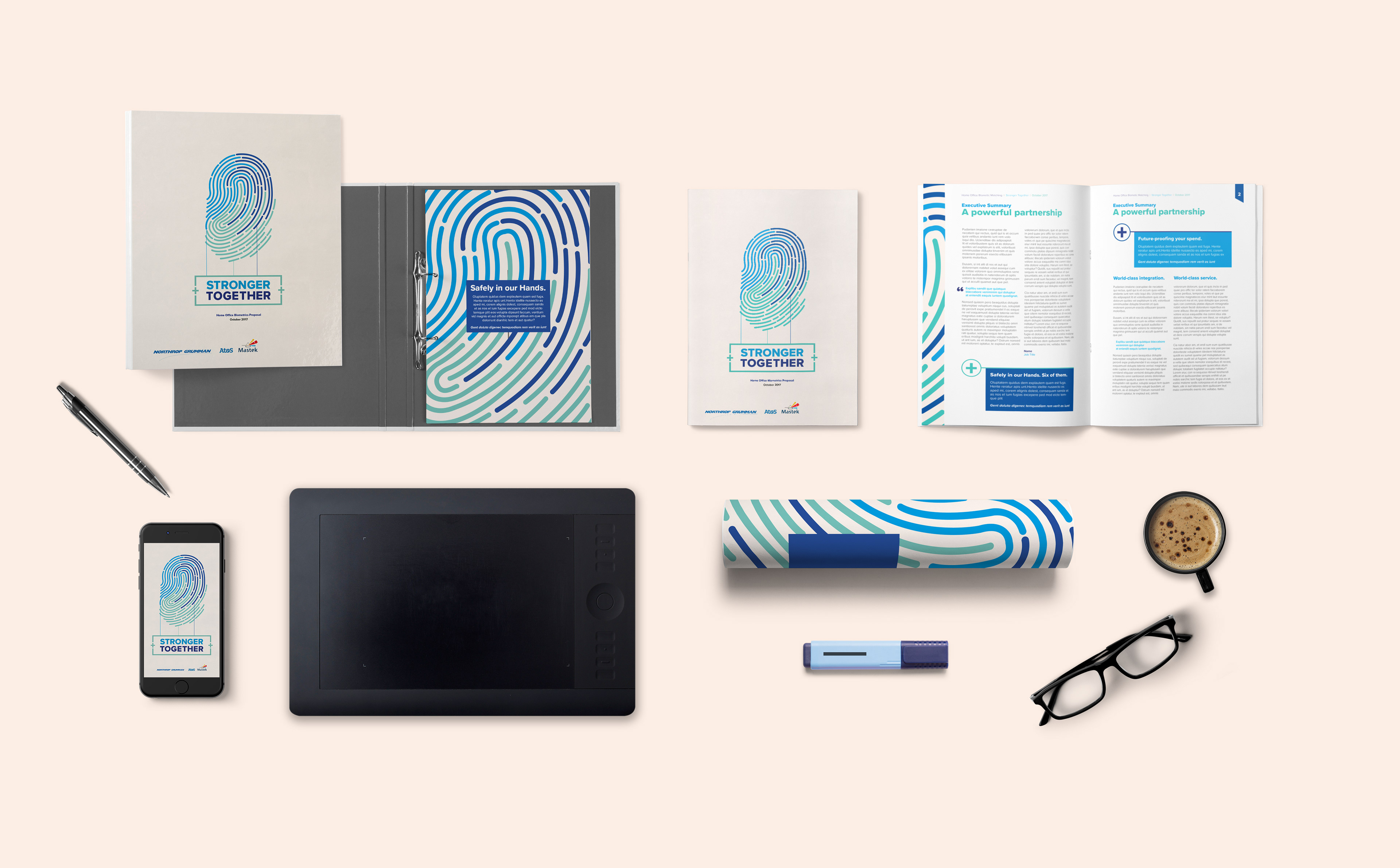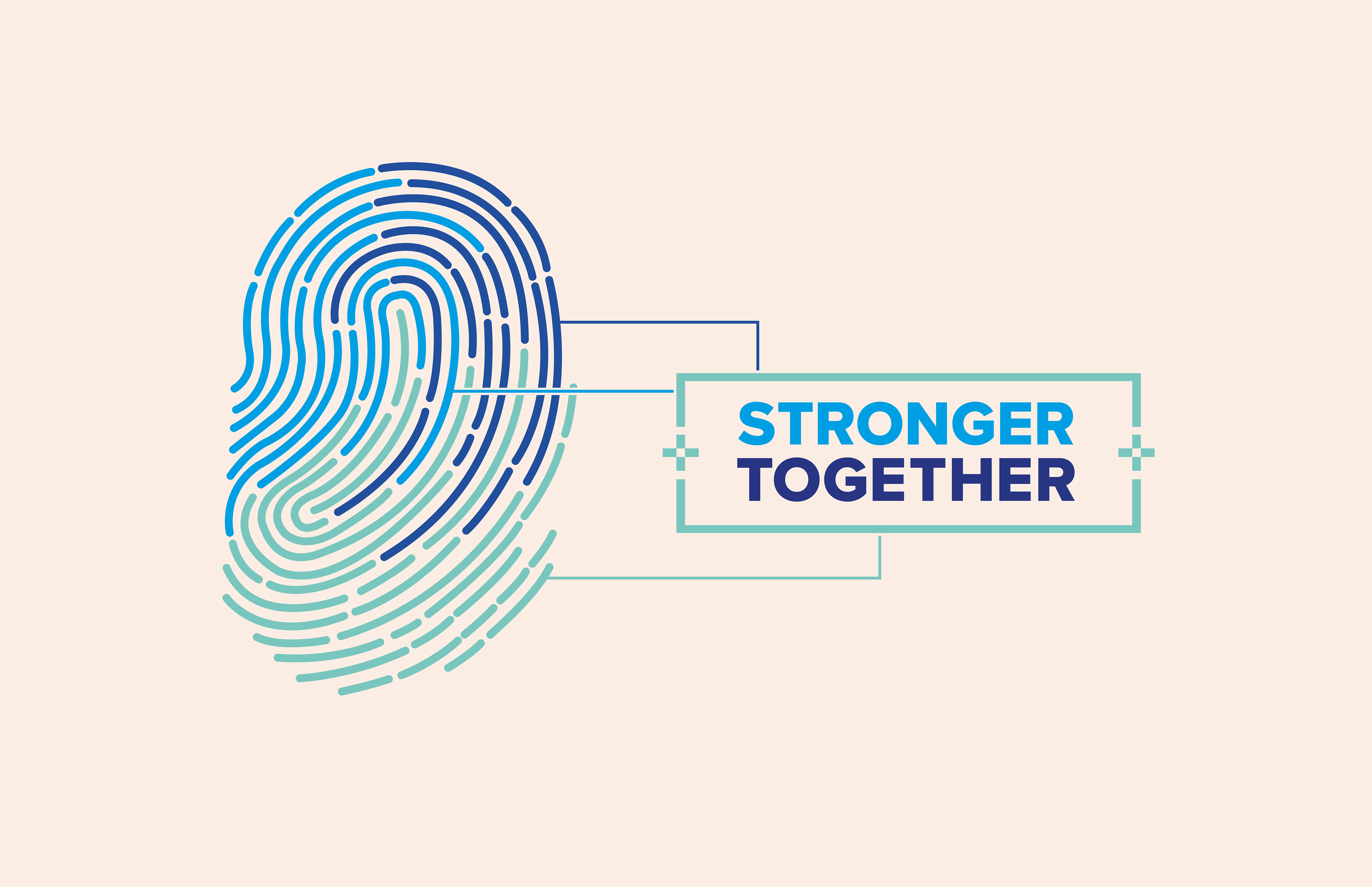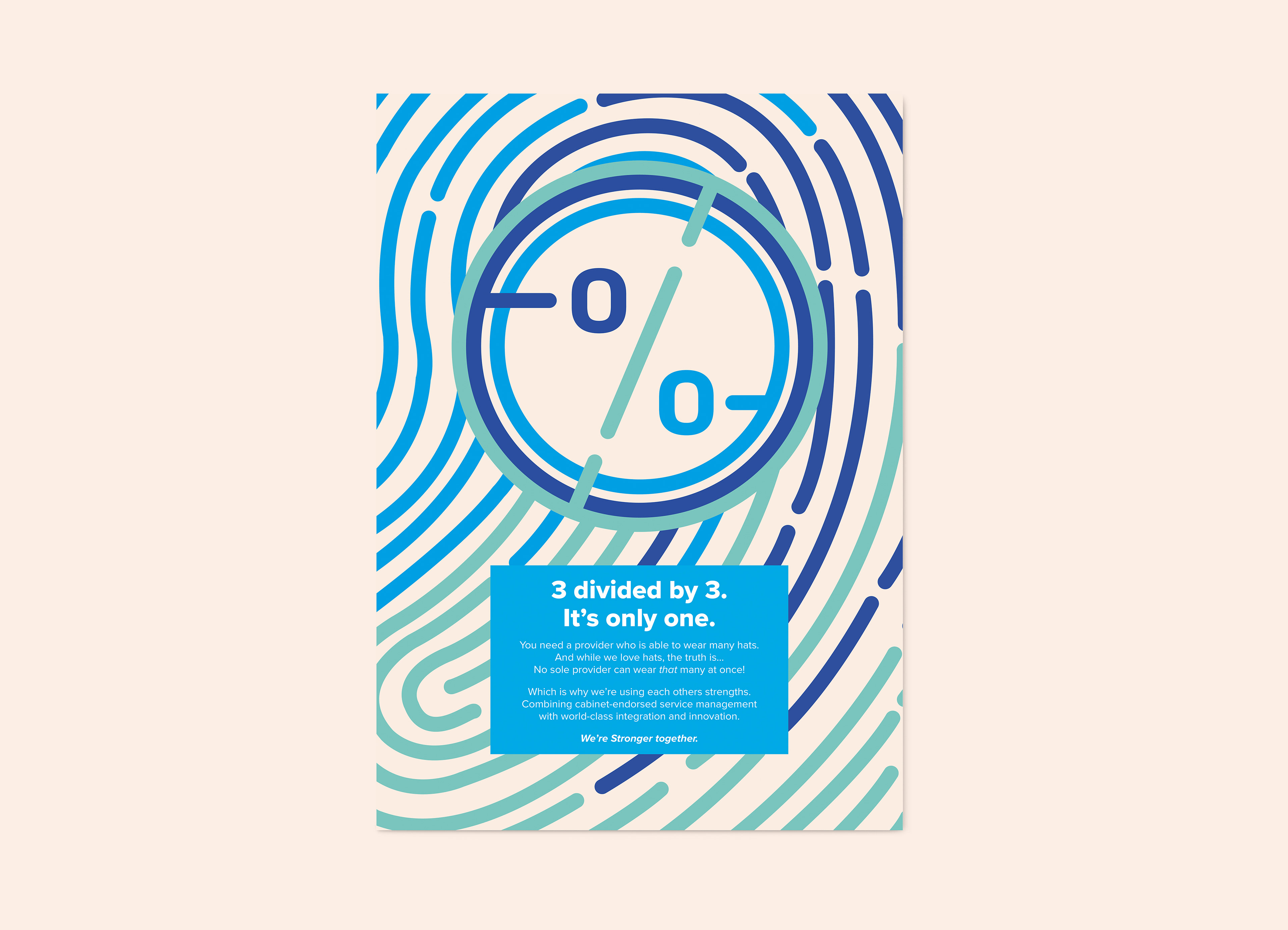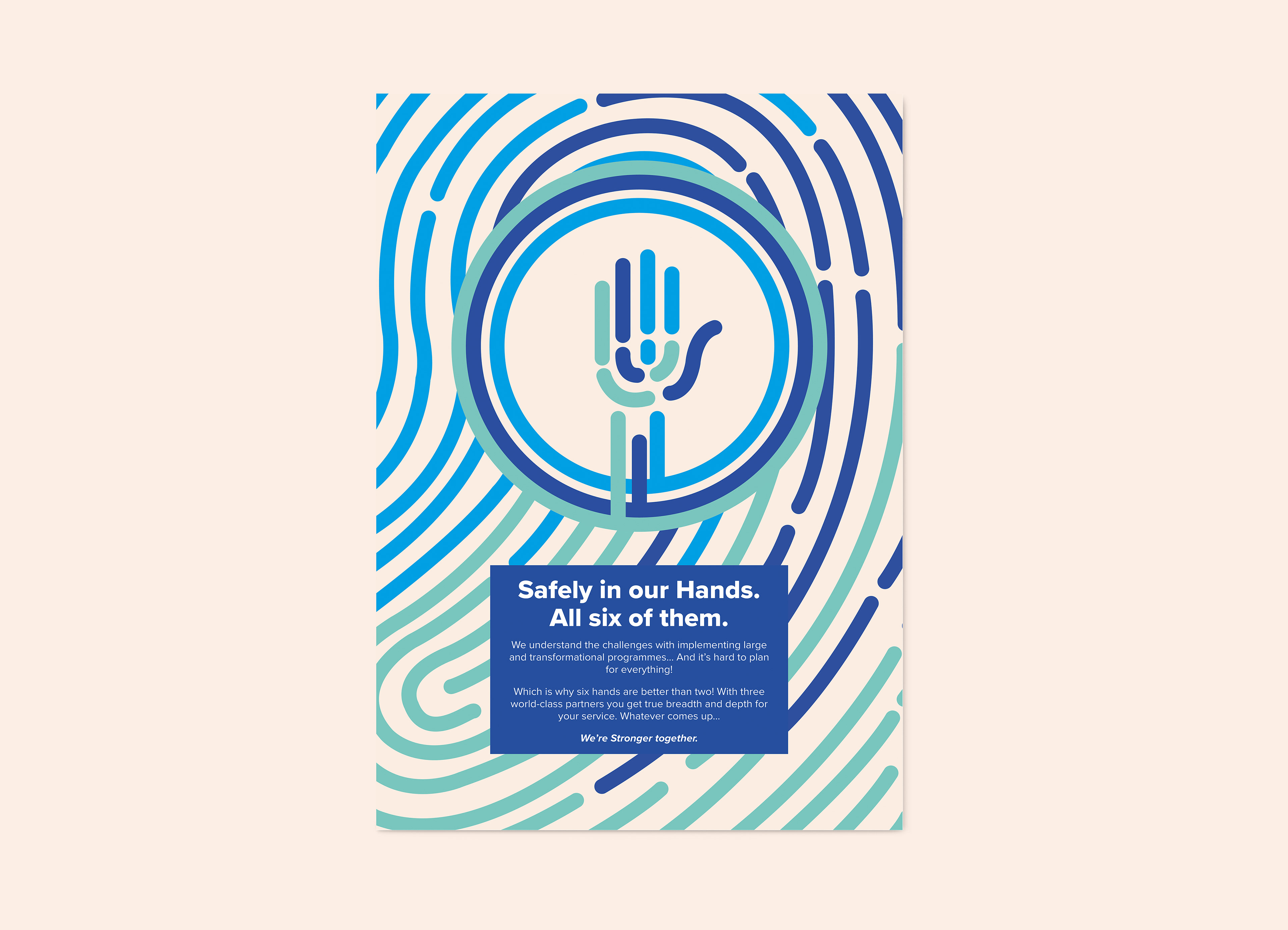 An iconic image that resonates with all, bringing three colours together to form one ‘print’ visually enforces the bold headline.